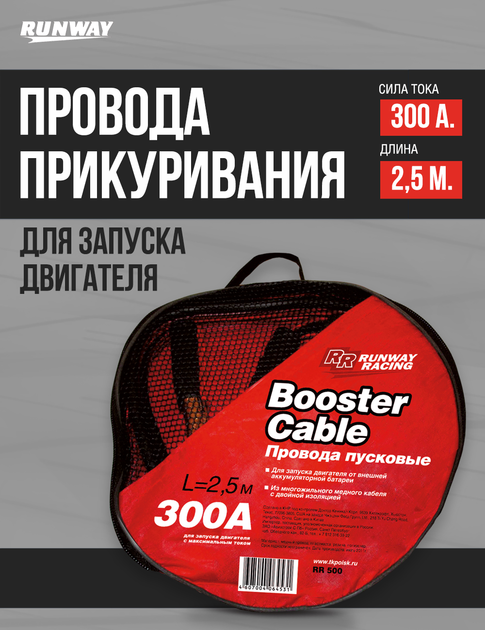RR300 Провода для запуска двигателя в сумке 300А