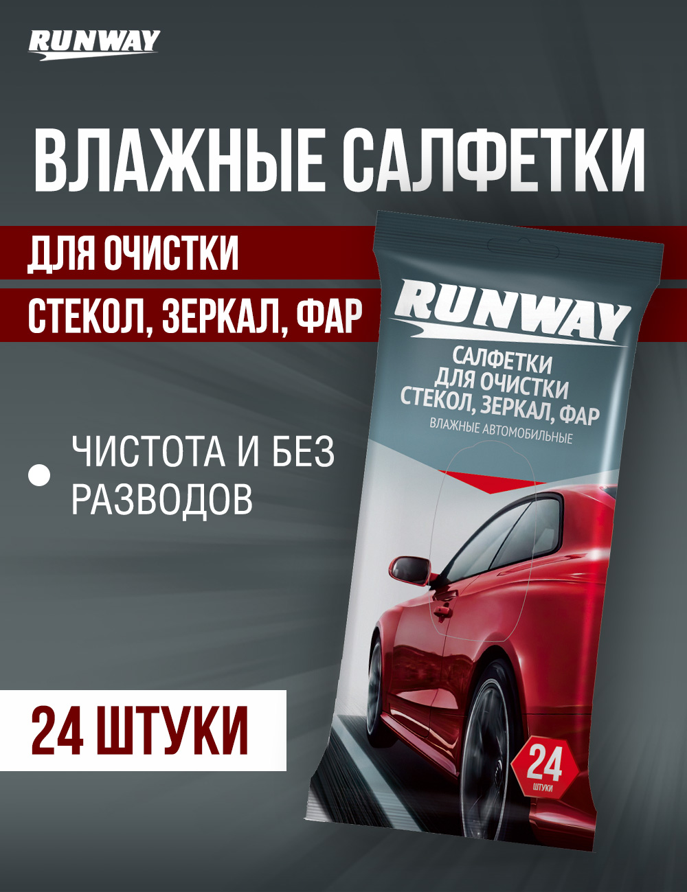 Влажные салфетки для очистки стекол, зеркал, фар RUNWAY RW642 25 шт. 46972 превосходно очищают от дорожной грязи, масла, жира, следов насекомых и других загрязнений. Материал не оставляет разводов и ворсинок на поверхности. Салфетки можно использовать в быту, внутри и снаружи автомобиля. Размер изделия: 15х20 см.