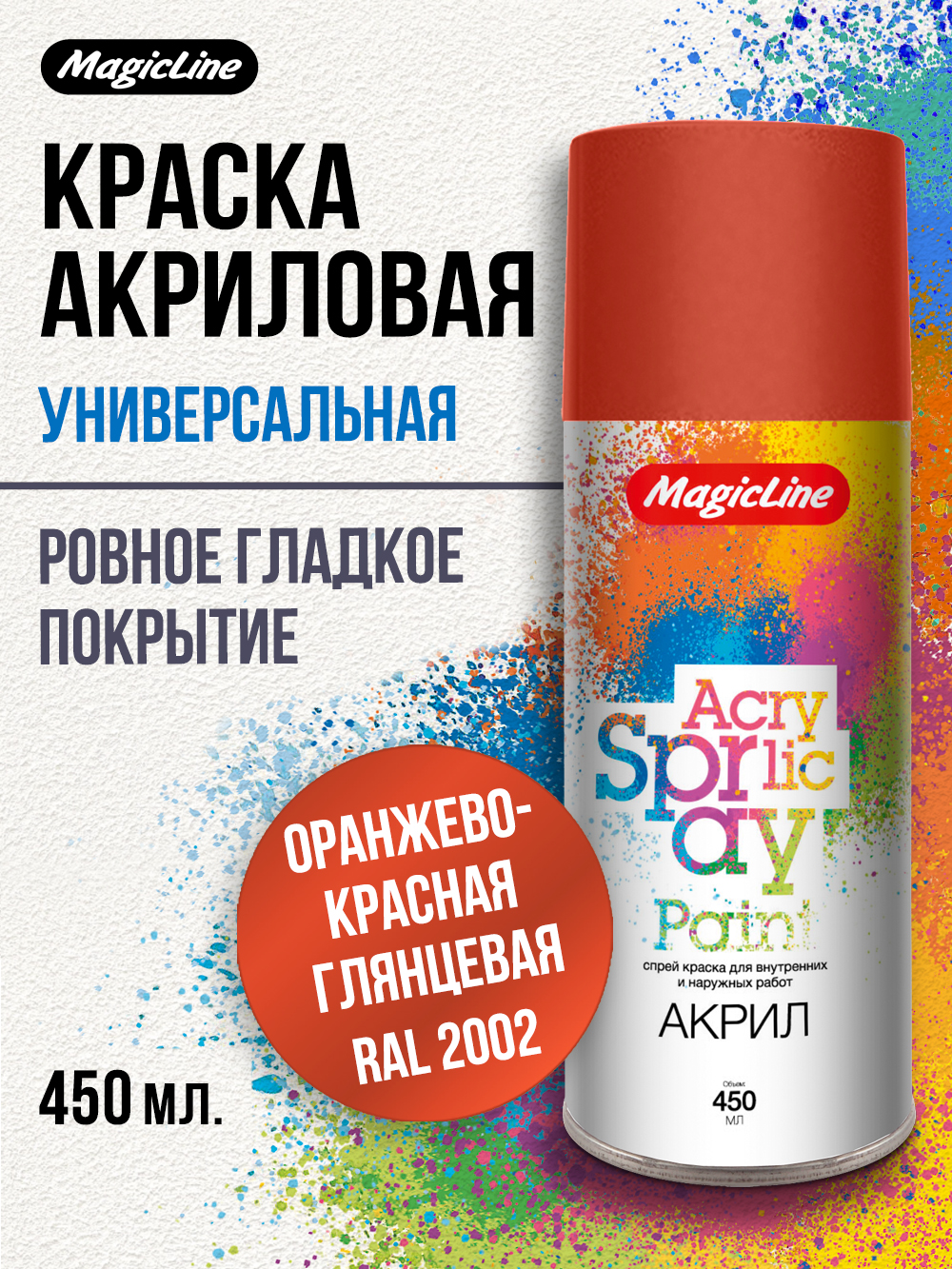 Аэрозольная акриловая краска MagicLine используется для внутренних и наружных работ.Не содержит хлорфторуглеродов.