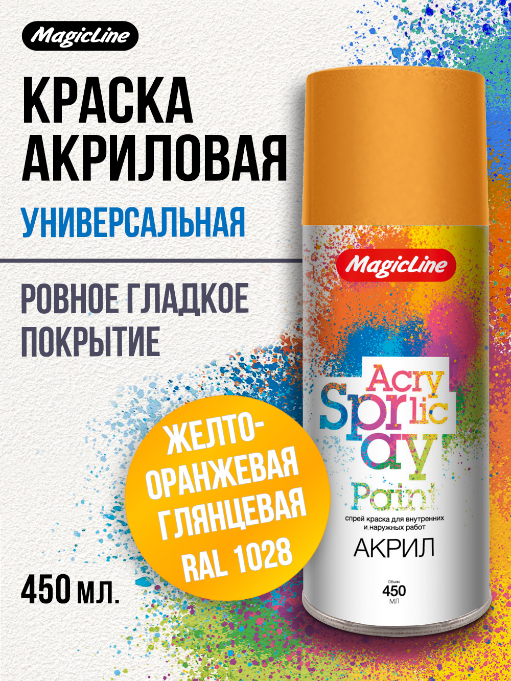 Аэрозольная акриловая краска MagicLine используется для внутренних и наружных работ.Не содержит хлорфторуглеродов.
