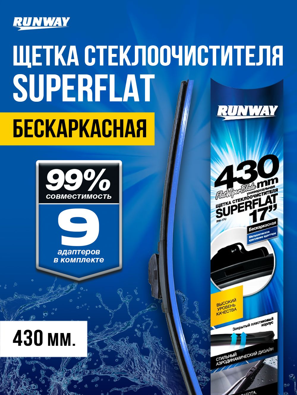 Щетка стеклоочистителя бескаркасная универсальная SUPERFLAT 430мм RUNWAY