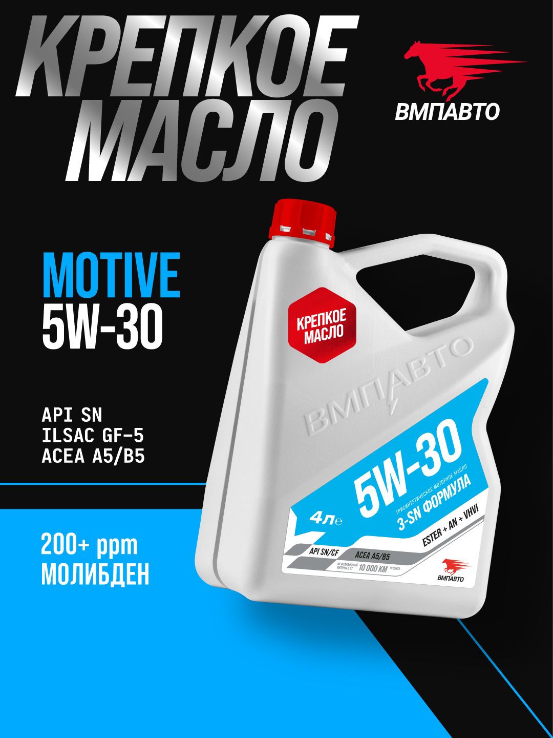 SN-пакет присадок, разработанный ВМПАВТО обеспечивает защиту двигателя от износа, стабильные характеристики масла и чистоту деталей двигателя - всего через три замены двигатель будет очищен от лаковых отложений.