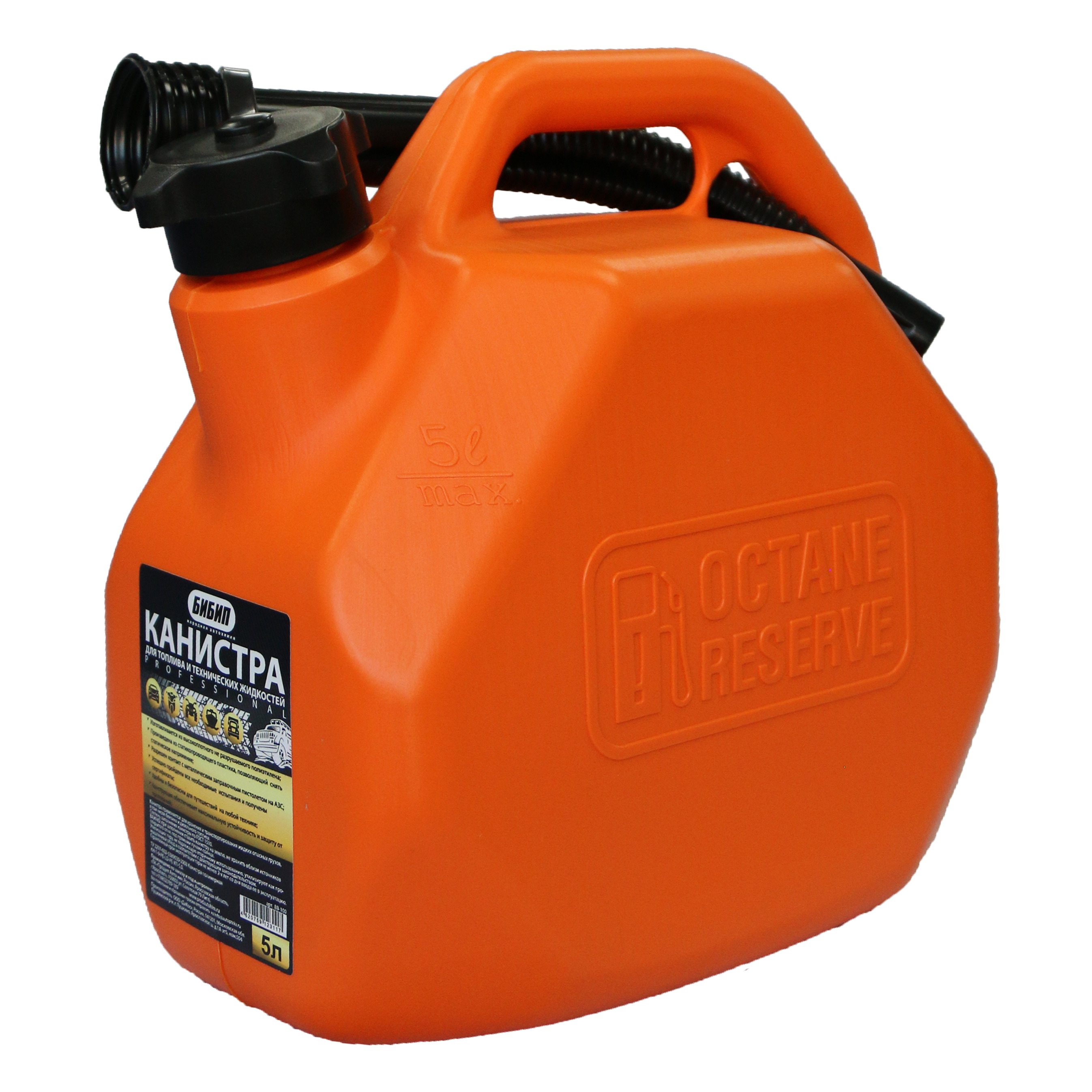 Канистра для бензина 5 л и дизельного топлива усиленная БИБИП с крышкой и лейкой ОРАНЖЕВАЯ - применяется для хранения и транспортирования жидких опасных грузов, в том числе бензина и дизельного топлива. В комплект входит гибкий носик для удобной заправки автомобиля, катера, мотоблока и другой техники.